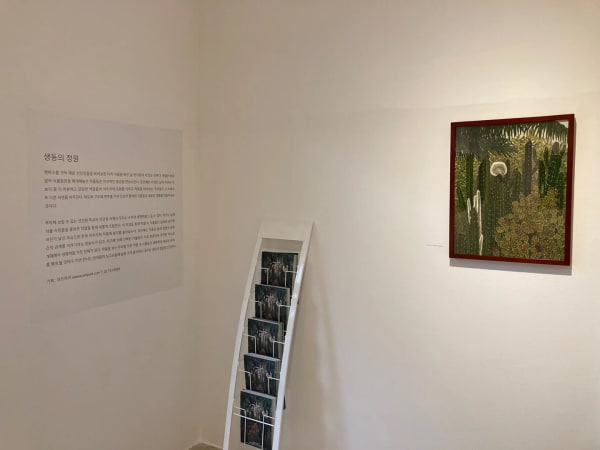 투박해 보일 수 있는 선인장 특유의 단단함 속에서 우리는 오히려 생명력을 느낄 수 있다. 작가는 실제 식물 사진들을 콜라주 작업을 통해 새롭게 조합한다. 이 작업을 통해 작품 속 식물들은 실제와 같지만 어딘가 낯선 모습으로 한데 어우러져 작품에 생기를 불어넣는다. 정인혜는 작품을 통해 생명과 생명 간의 관계를 이야기하는 정원사가 되고, 작가에 의해 선택된 식물들은 서로 연결되어 연약한 하나의 개체에서 생명력을 가진 전체가 된다. 작품을 보는 우리들 또한 작품 속 식물들의 생명력과 새로운 관계를 맺게 될 것이다. 이번 전시는 한여름의 싱그러움에 숨을 크게 들이쉬고 내쉬는 생동의 정원을 선사한다.