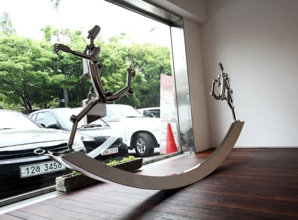 넘어질 듯하면서도 다시 일어나 움직이는 정국택의 조각은 꿈과 현실, 서글픔과 자그마한 행복의 경계를 오가며 오뚝이처럼 살아가는 현대인의 모습을 연상시킵니다. 이번 전시는 스테인리스 스틸의 물질성과 단순 명쾌한 내용을 조화시킨 구상 조각의 매력을 느낄 수 있는 기회가 될 것입니다.