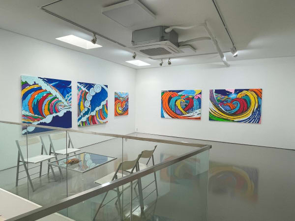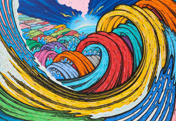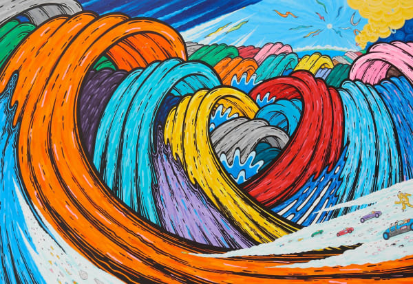 The waterfalls, literally and figuratively, evoke me Niagara Falls as much as the majestic organs of European cathedrals. The colored waves suggest life, movement, stories & the vagaries of life. All of them ending their fall in a static electric blue of wisdom, wrapping us in peace and tranquility. Yeo Dong-hun's work is clearly influenced by the pop art movement.