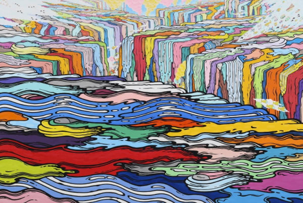 내가 ‘폭포’ 작업을 처음 구상한 것은 나의 정신적 지주인 로이 리히텐슈타인이 1997년 사망하고 나서부터다. 나는 화가의 삶을 살 거라고는 상상조차 하지 않으며 청소년기를 보냈다. 그저 ‘그림에 재주가 있는 녀석’ 정도로 스스로를 평가했고, 만약 그림을 그리는 것을 직업으로 선택한다면 만화가 또는 일러스트레이터가 될 것이라 막연히 생각했다. 그러다 접한 리히텐슈타인의 작품은 나에게 마치 한줄기의 빛과 같았다. 나는 그의 작품을 보며 만화의 한 장면도 멋진 작품이 될 수 있음을 깨달았다. 아마 그때 처음으로 화가라는 직업에 대해 생각해 보았던 것 같다. 세월이 흐른 뒤 나는 1996년 추제 갤러리(판화 진흥회 “BELT”전 초대)에서의 첫 개인전을 시작으로 화가의 길에 들어섰고, 그 다음 해인 97년에 리히텐슈타인의 사망 소식을 접했다. 그리고 나는 화가의 길로 인도해 준 그에게 헌정 작품을 그리고 싶은 마음으로 ‘폭포’ 작업을 시작했다. 이 작업을 하며 큰 변화를 하나 겪었는데, 주 종목을 판화에서 회화로 바꾸게 된 것이다. 리히텐슈타인의 ‘붓자국’ 시리즈를 빌려와 작업을 시작했고, 다양한 변화를 주며 연구했다. 그러던 중 이전에 이어오던 작업인 ‘Welcome to Paradise’가 좋은 반응을 얻으며 이에 매진하느라 한동안 다른 작업을 못 한 채 시간이 흘렀다. 2019년 나는 예전에 그려 둔 ‘폭포’ 작업의 드로잉을 보며 새로운 창작욕구를 다시금 느꼈고, 다시 이 작업에 매진하고 있다.