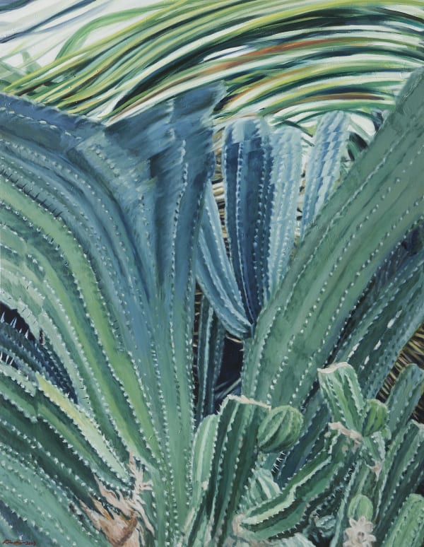 이렇게 멍 때릴 때 우리는 초점이 흐려지고, 겹쳐지며 모호해지는 것을 경험하는데, 작가 김수진은 이 초점을 캔버스에 담는다. 작가는 비정형적이고 불규칙적으로 보이는 선인장에서 자연의 질서를 찾고, 이를 패턴화하여 의도적으로 과장하고, 무한히 반복한다. 그리고 이는 마치 만화경처럼 보인다.