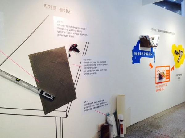 이번 『미술놀이』는 일반적인 작품 보여주기 대신 작업의 과정과 아이디어를 관객과 함께 공유하는 구성으로 이루어지는데, 작품의 출발점이 된 아이디어를 사진자료, 텍스트, 오브제 등과 함께 재구성하여 완성된 작품과 함께 보여준다. 이를테면 도심야경의 인공조명들을 무수히 모아 커다란 별을 만들고 이를 밤의 새로운 태양, 블랙스타라고 칭하는 「블랙스타 놀이」, 플라스틱 펫트병이 푸른 하늘과 숲을 먹어가는 대량생산의 이면을 유머러스하게 표현한 「펫맨」, 갑갑하게 보이는 책 속의 이미지들을 흡사 팝콘처럼 부풀려 자유롭게 풀어주는 종이말기 「팝업 놀이」 등 생활 속 흔히 보는 현상들에 작가 특유의 유희성, 예술로서의 심미성, 사회적 메시지가 결합된 작고 간단하지만 특별한 놀이들을 선보인다. 관람객들은 작품 완성 이전 작가의 비밀스러운 아이디어 과정을 공유하면서 작가와 함께 동등하게 사고하고 상상하며 각자의 의미를 생산하는 자유로움을 느낄 수 있을 것이다.