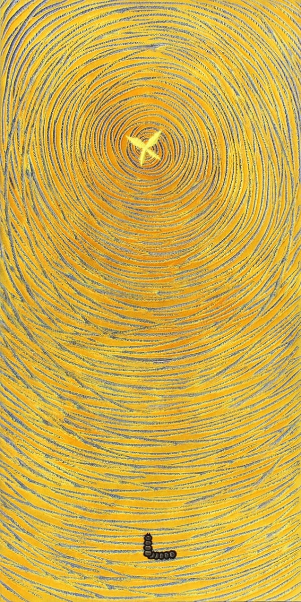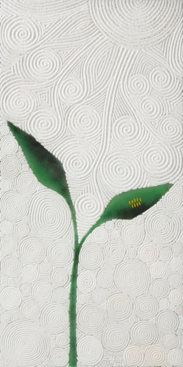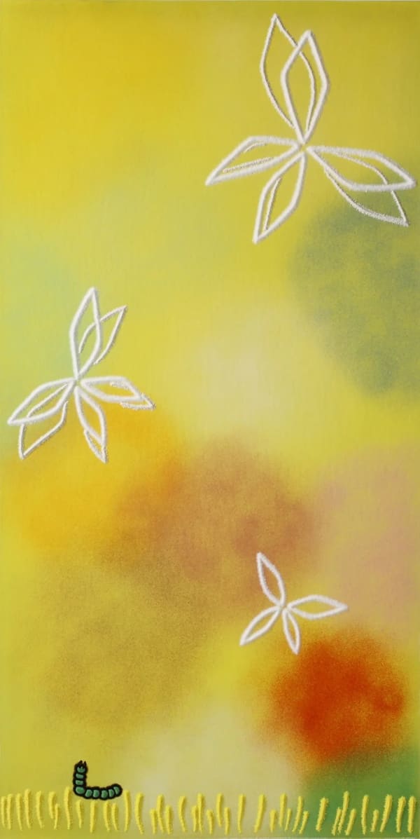 이번 『나날-푸른 애벌레의 꿈』 전시는 미래에 대한 막막한 두려움을 막연한 희망으로의 치환이라는 주제로 전개하고 있다. 작가의 작업형태는 티베트의 샌드 만다라와 그 결을 함께하고 있는데, ‘만다라’는 ‘본질을 얻다’정도로 풀이된다. 반복적으로 모래를 뿌리면서, 잡념이 사라지고 행위자체에만 집중하여 우주만물의 합일을 경험하는 수도승처럼, 작가는 유리가루를 뿌리는 작업을 통해 구도의 한 방법을 제시하면서 희망을 노래하고 있다. 특히, 제목에서 엿볼 수 있듯, ‘푸른 애벌레’라는 소재의 모티브는 사춘기 시절 작가와 함께했던 노래, 시인과 촌장의 ‘푸른 애벌레의 꿈’과 소설 ‘꽃들에게 희망을’에서 비롯된 것으로 하루하루 치열하게 자아를 찾아 떠나는 한 애벌레의 이야기로, 각박한 현실을 살아가고 있는 우리네 삶을 작품으로 위로하고 있다.