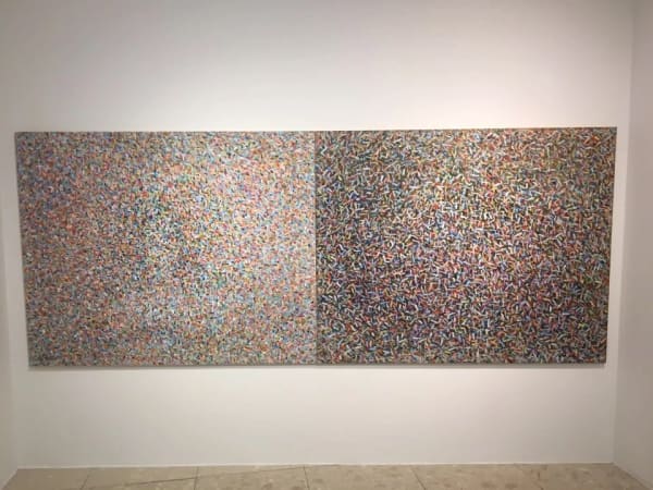 이번 『천국-스며들다』 전시에서는 천국은 어디에 있는 것인지에 대한 근원적인 물음에 작가만의 답을 찾는 과정을 보여준다. 천국은 우리가 인지하는 시간과 공간의 제한이 없는 무한대의 영원한 공간이다. 우리 삶 속의 작음 틈새에 스며들어 있기도 하고, 어디에나 천국은 존재한다. 천국은 이물질처럼 끼어 있거나 붙어 있지 않고 스며들어 그 존재감을 고고히 발하고 있다. 썰물로 빠진 바닷속에 드러난 갯벌에 바닷물이 스며들어 반짝이며 그 기름진 영양분을 뽐내는 모습처럼, 상쾌한 바람, 생명이 지나치며 내는 소리까지 천국에서 스며들어 있다. 작품 속 강렬하게 다가오는 붓의 터치와 빛을 발하는 다채로운 색감들은 일상 속에 스며들어 있는 각각의 천국의 모습을 나타내고 있다. 천태만상 개개의 다양한 삶 속에서 부닥치는 역경과 고난 속에서도 이상향을 통해 유희의 가능성을 찾아보려는 노력이 엿보인다. 작품 속 정형화 되어 있지 않은 수 많은 붓 자국은 제각기 하나의 생명체로써 움직이고 호흡하는 것과 같은 형상을 띠고 있다. 이를 통해 작가는 순간의 스쳐가는 일상의 파편들을 서로 이어놓고, 하나의 조각들로 이루어진 모습을 통해 진정한 이상향에 대해 숙고한다.
