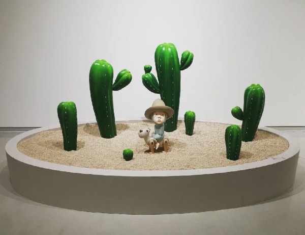이번 전시는 자연과 인간 사이의 관계를 성찰하고자 한다. 자연과 인간을 연결하는 작가 자신만의 표현 방식과 시각으로 인간과 자연이 공존하고 있음을 나타내며, 소라와 자갈돌 등 자연 그대로의 오브제를 작품에 사용한다. 그의 작품에는 작가 자신을 캐릭터화 한 얼굴에 눈동자를 음각으로 표현하여 마치 작가가 관람객을 바라보는 듯한 흥미로운 시각적 즐거움을 준다. 줄지어진 자작나무 속 양의 모습을 한 작가, 사이좋은 두 마리의 팬더처럼 보이는 작가 등 멀리서 보면 사람이 있는 것을 알아차리지 못할 정도로 자연과 하나된 모습으로 어울린다. 작품 속 사람은 자연물과 함께 등장하거나 자연과 동화된 모습을 하고 있다.