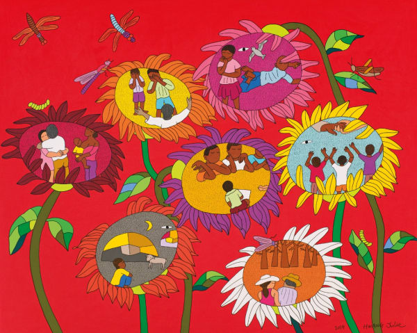 해바라기를 처음 본 건 일본어로 된 고흐의 화집에서였다. 그래서 내가 세상에서 제일 좋아하는 꽃은 실제 해바라기가 아닌 그림 속의 해바라기다. 왜 나는 실제 꽃보다 그림 속의 꽃을 오래 기억하는 걸까? 그림 속의 꽃은 시들거나 죽지 않기 때문일까? 모든 사람이 좋아하는 꽃, 사랑하는 사람에게 선물하는 꽃, 병문안을 갈 때 들고 가는 꽃, 우울한 날에 한 묶음 사서 화병에 꽂아놓는 꽃, 시들지도 죽지도 않는 화려하고 아름다운 만든 꽃, 꽃은 아무래도 사랑과 생명의 상징일거다. 어쩌면 내 그림 속의 꽃은 시들지 않는 조화의 이미지인지도 모르겠다. 아무래도 내게 꽃은 삭막한 현실에다 풀이나 강력 접착제로 정성껏 붙이고 싶은 꿈속의 벽지 같은 모양이다. 그 꿈속의 벽지가 바로 내가 그린 꽃그림이기도 하다.